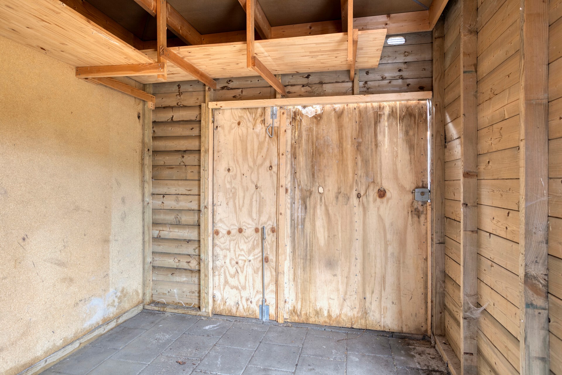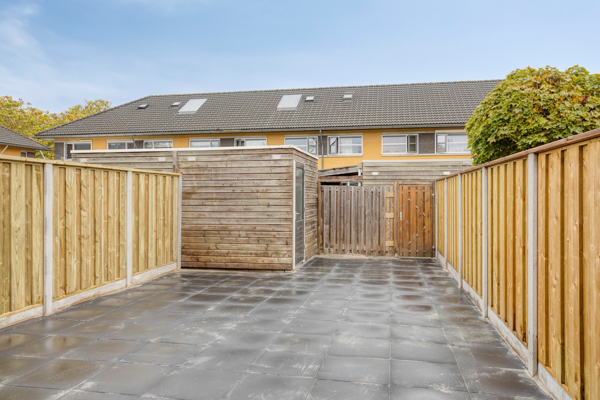 Een ruime, onderhoudsarme tuin gericht op het noorden met berging en achterom. Door de diepte van de tuin is er gedurende het grootste deel van het jaar volop zon.