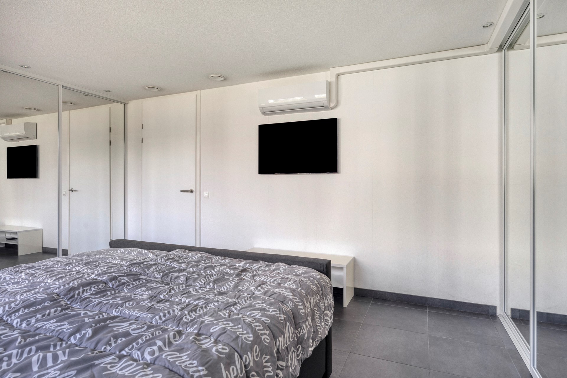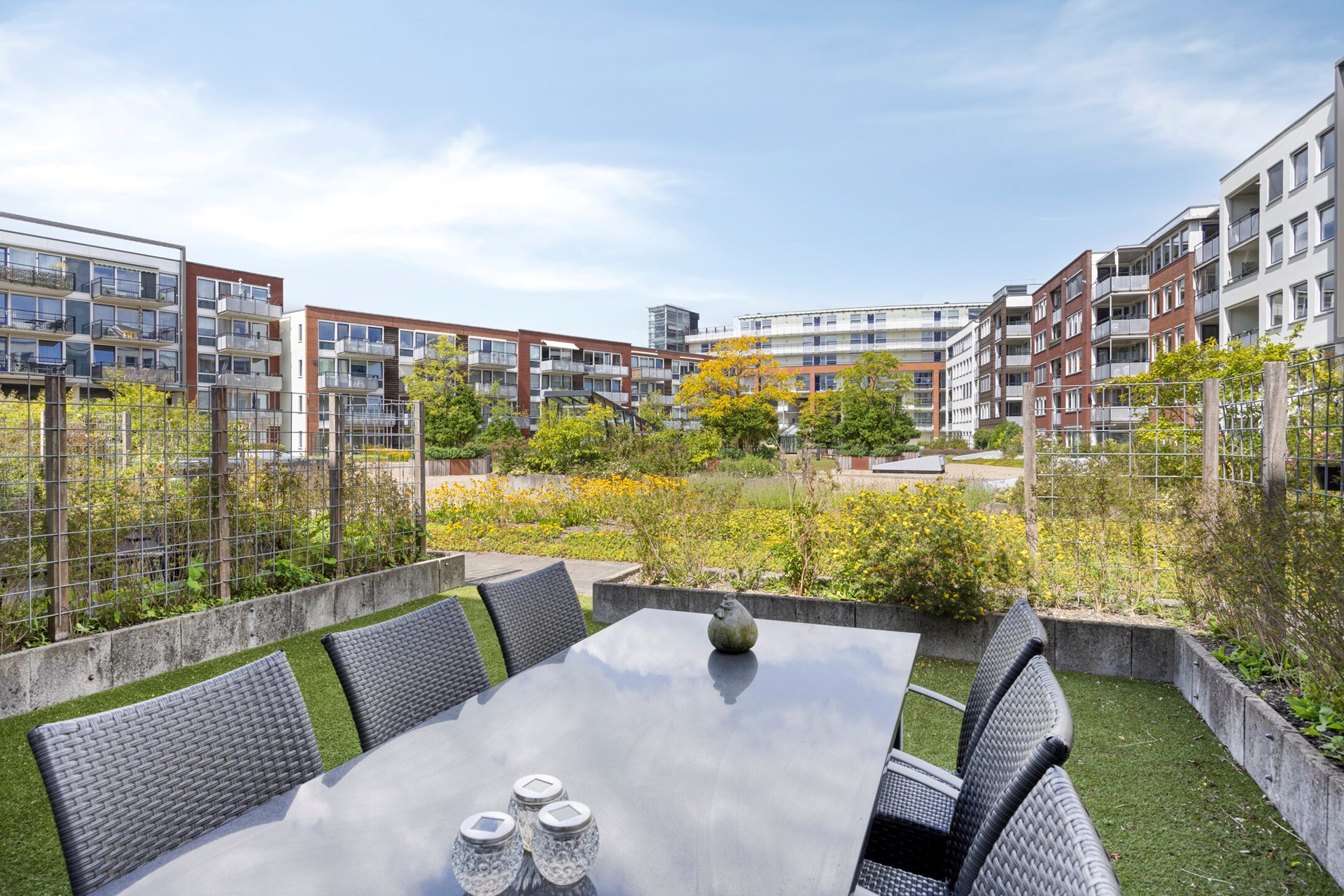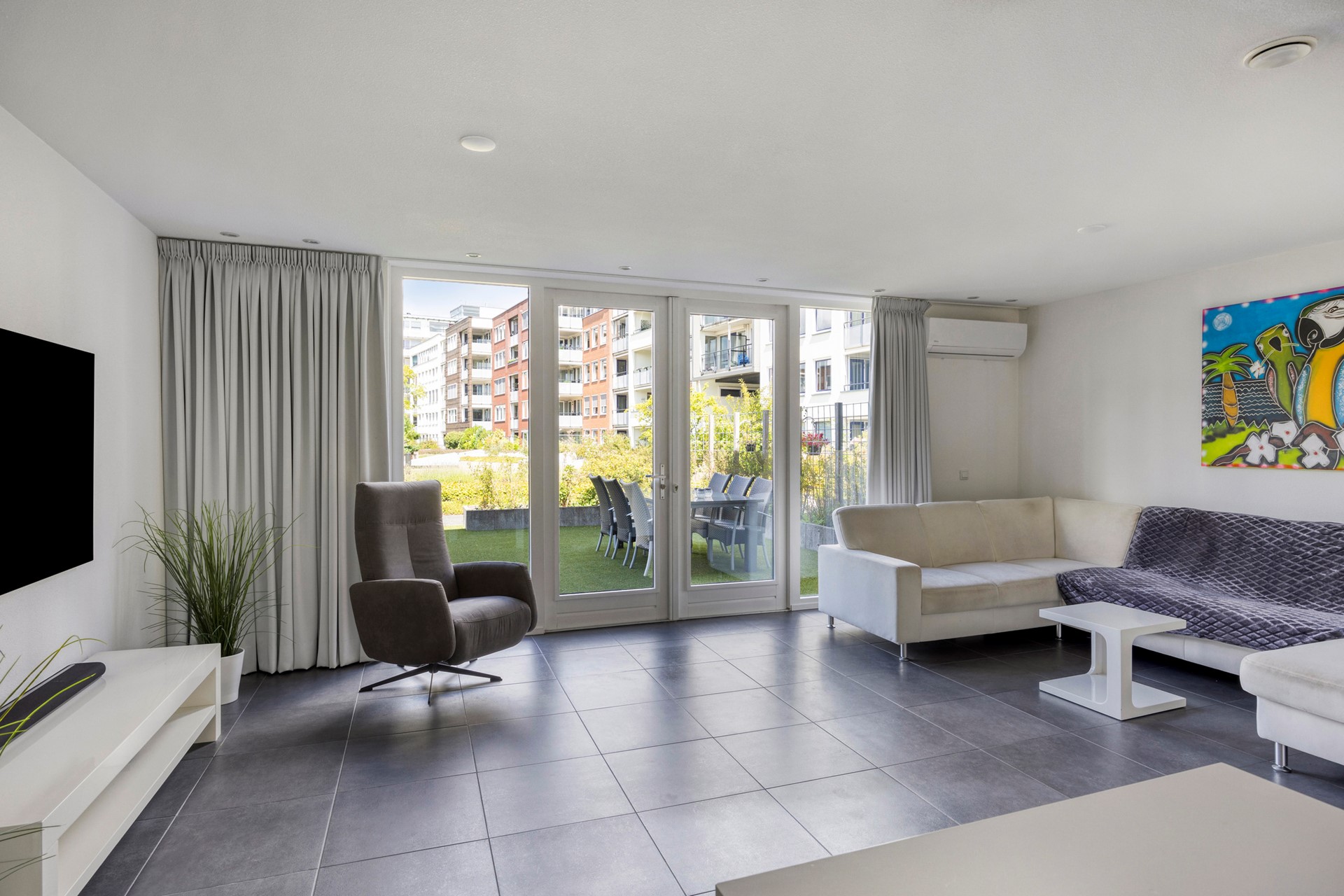 De woning heeft een gedeeltelijk split-level indeling, wat zorgt voor een speels karakter en veel lichtinval. Via de entree kom je in de ruime woonkamer, die direct toegang biedt tot de tuin. Deze tuin grenst aan de fraai aangelegde binnentuin van het appartementencomplex Quatre Mains, wat zorgt voor rust, privacy en een groene omgeving.