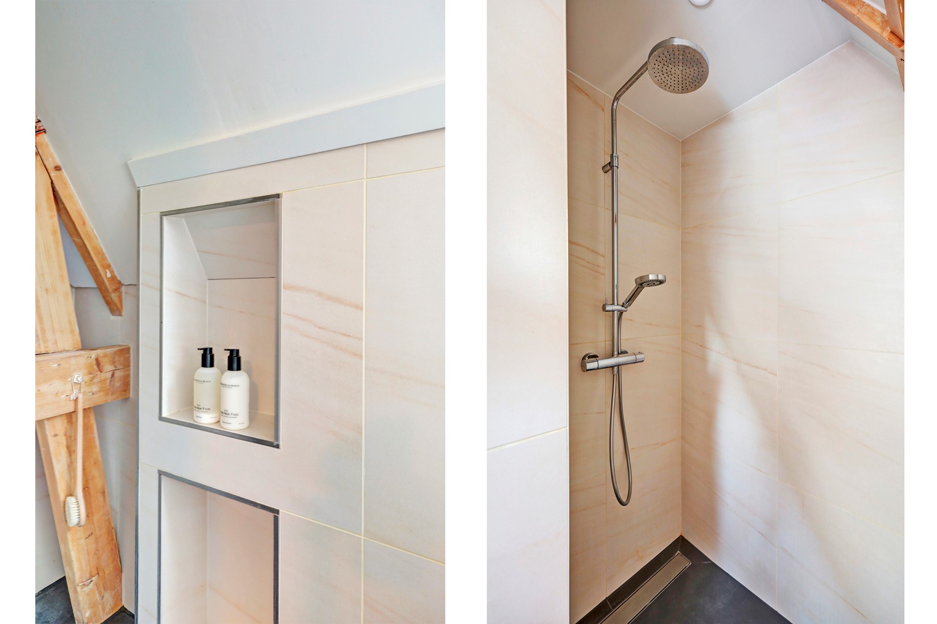 De badkamer is modern en stijlvol afgewerkt.