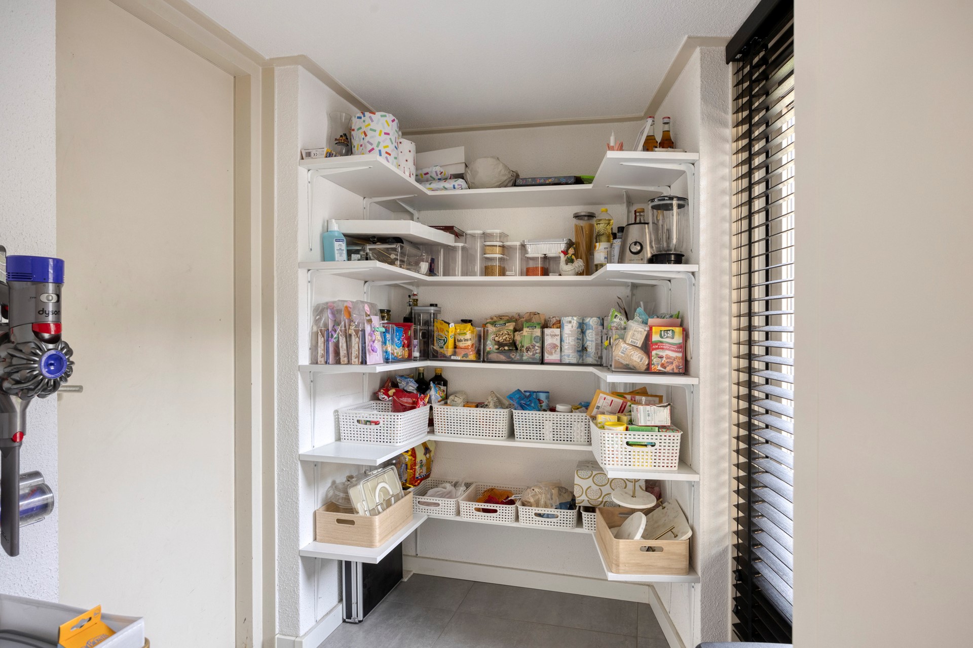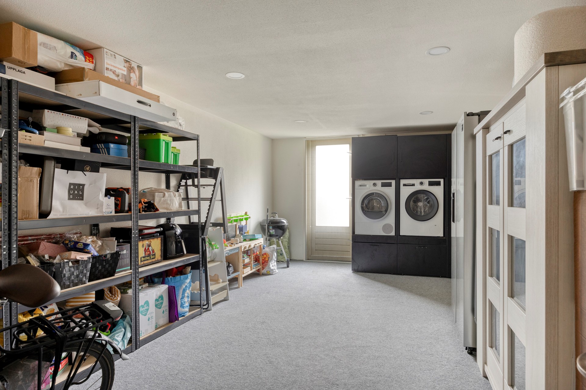 Aangrenzend vindt u de bijkeuken met extra bergruimte en toegang tot de garage, waar tevens de aansluiting voor was- en droogapparatuur is. Op eigen terrein is ruim voldoende parkeergelegenheid aanwezig.