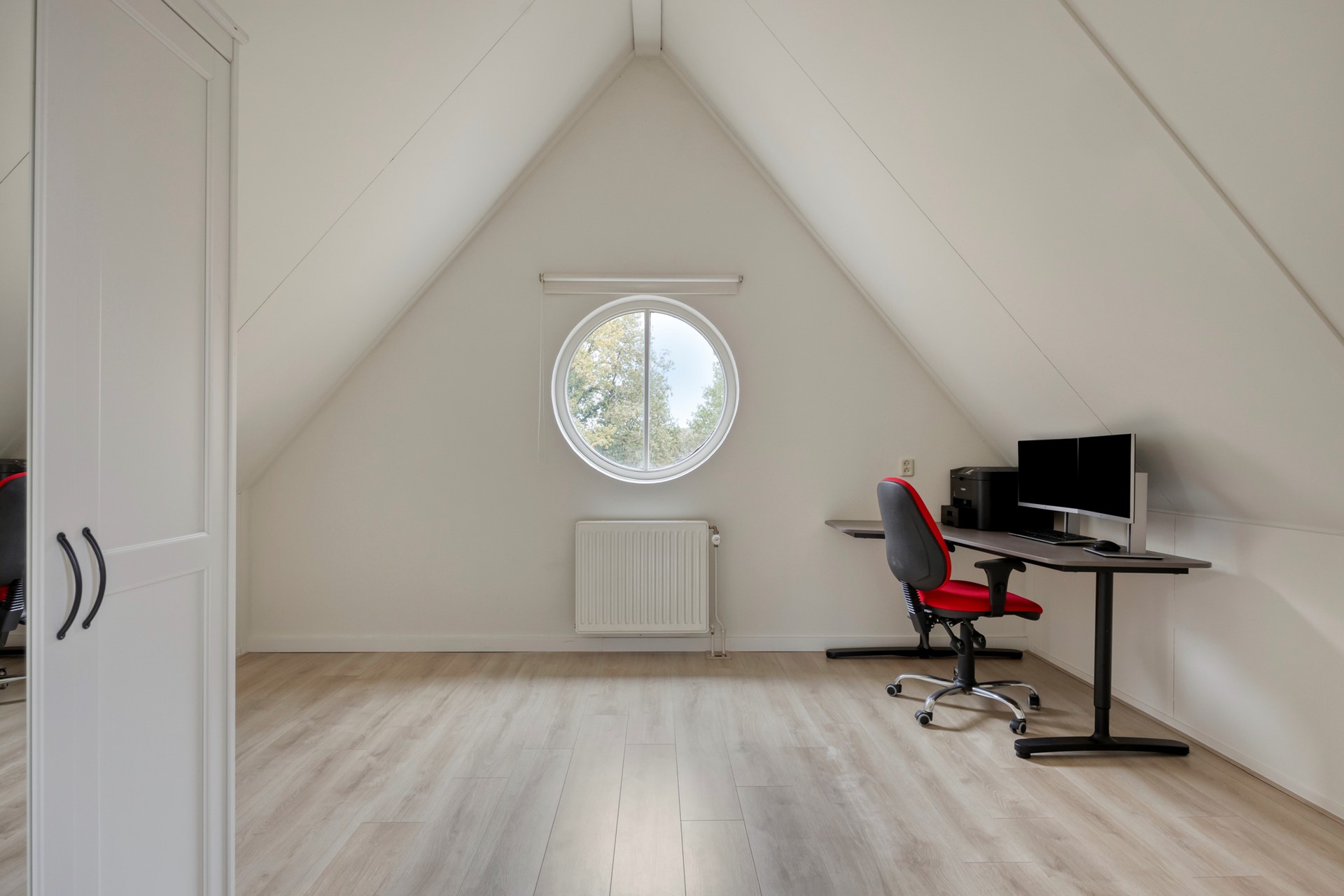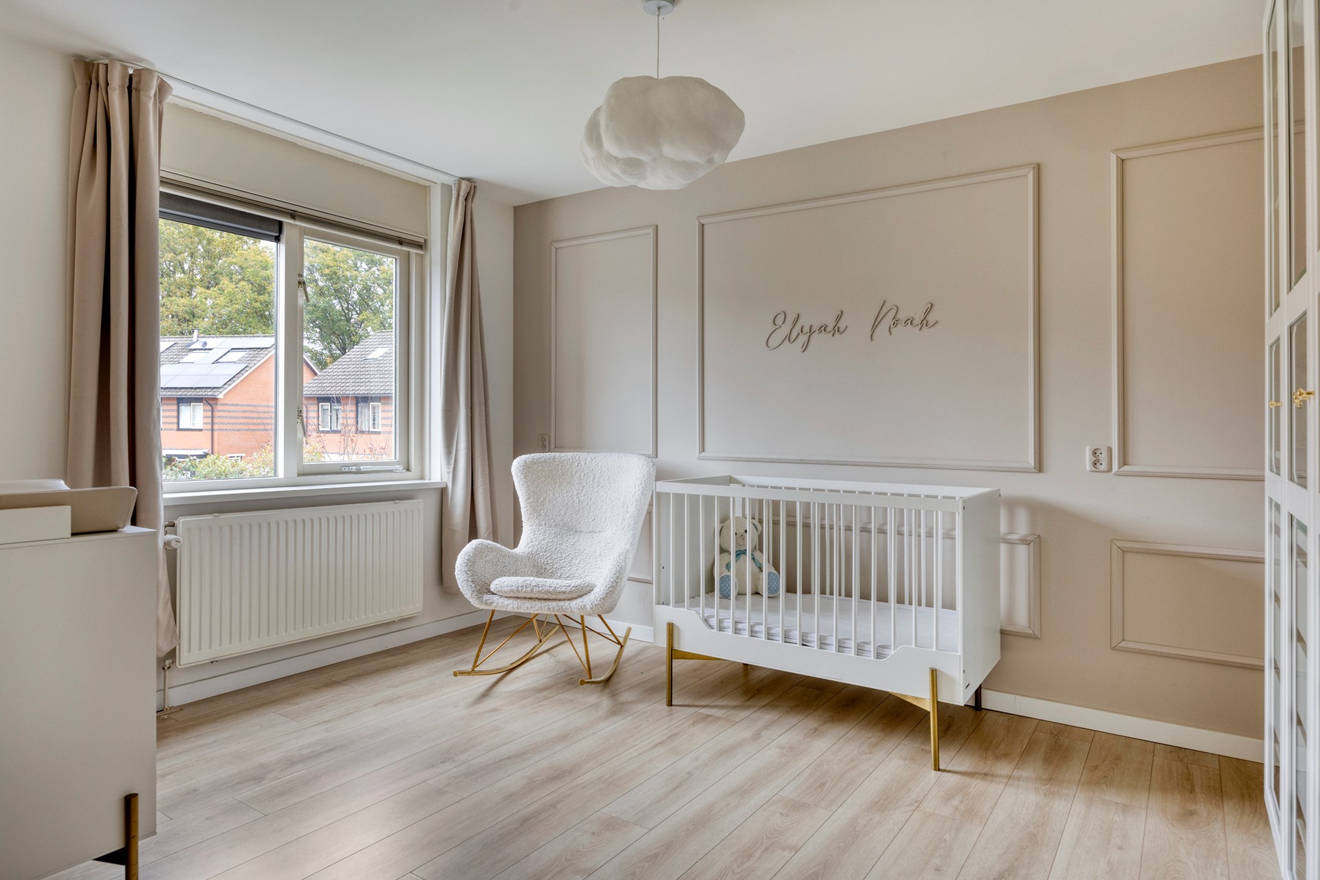 De woning beschikt over vier slaapkamers, waarvan de ouderlijke slaapkamer opvallend ruim is. De moderne badkamer is compleet ingericht met ligbad, inloopdouche, toilet en dubbele wastafel.