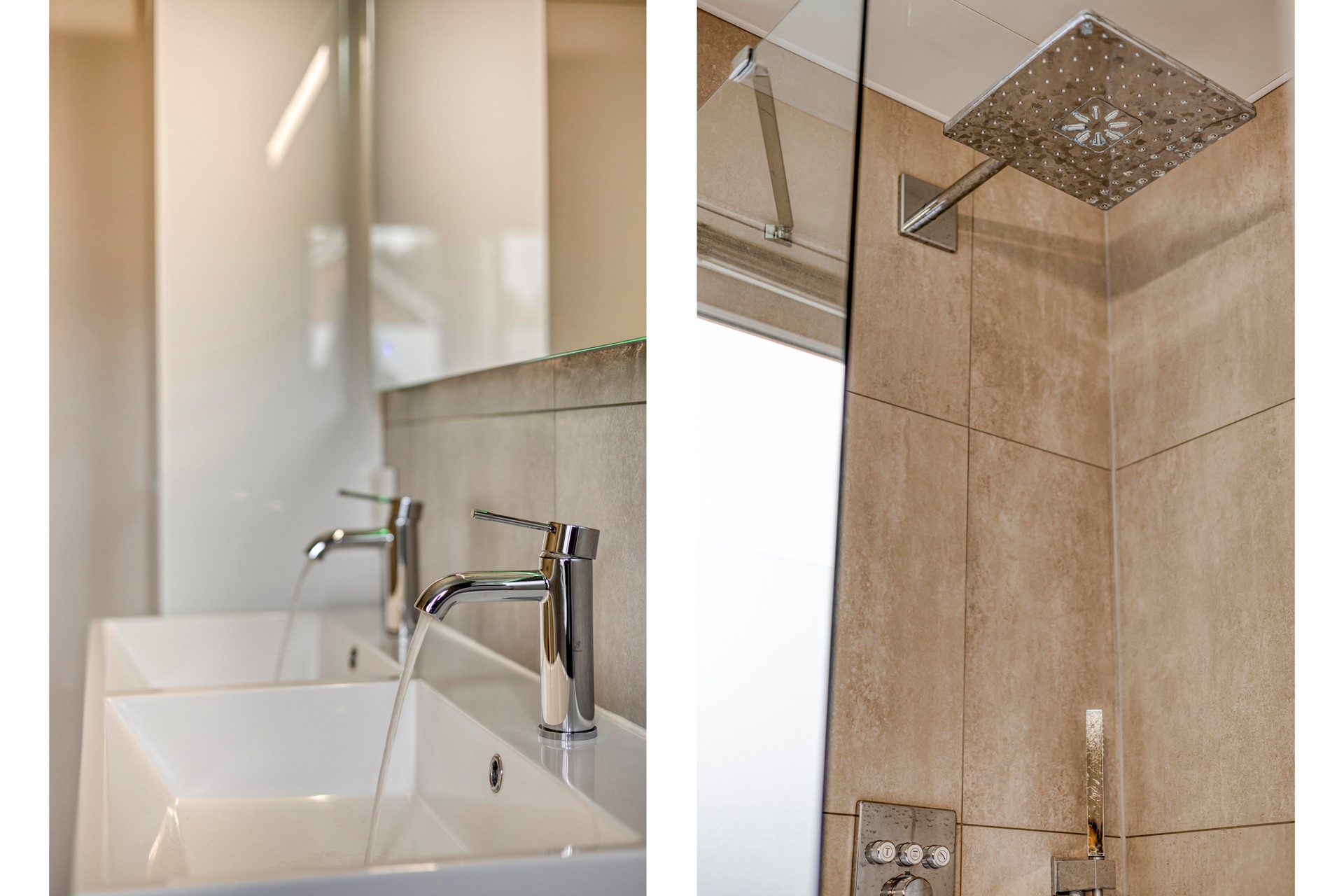 – Moderne badkamer met bad, douche, toilet en dubbele wastafel
