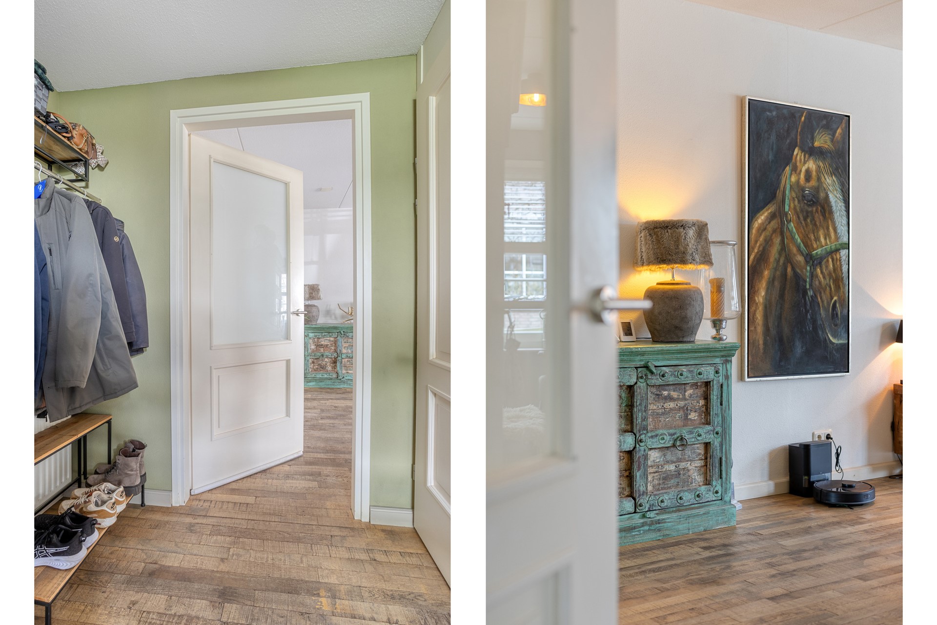 Bij binnenkomst in de hal valt direct de ruimte en hoogwaardige afwerking op – een mooie voorbode voor de rest van de woning. Hier bevinden zich de meterkast, garderobe, trapopgang en een moderne toiletruimte.