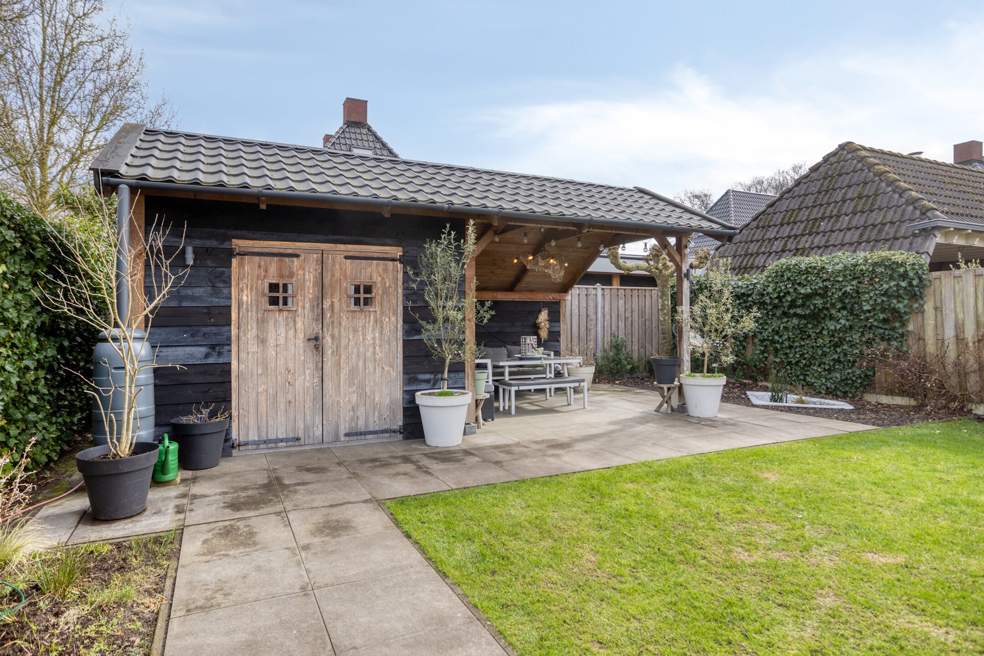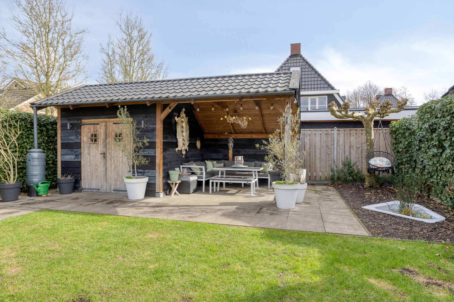 De fraai aangelegde achtertuin, gelegen op het zuidoosten, is een heerlijke plek om te ontspannen. Van het vroege voorjaar tot laat in het najaar geniet je hier volop van zon en privacy. De sfeervolle veranda met open haard maakt het buitenleven extra comfortabel. Achterin de tuin vind je bovendien een extra terras en een praktische berging.