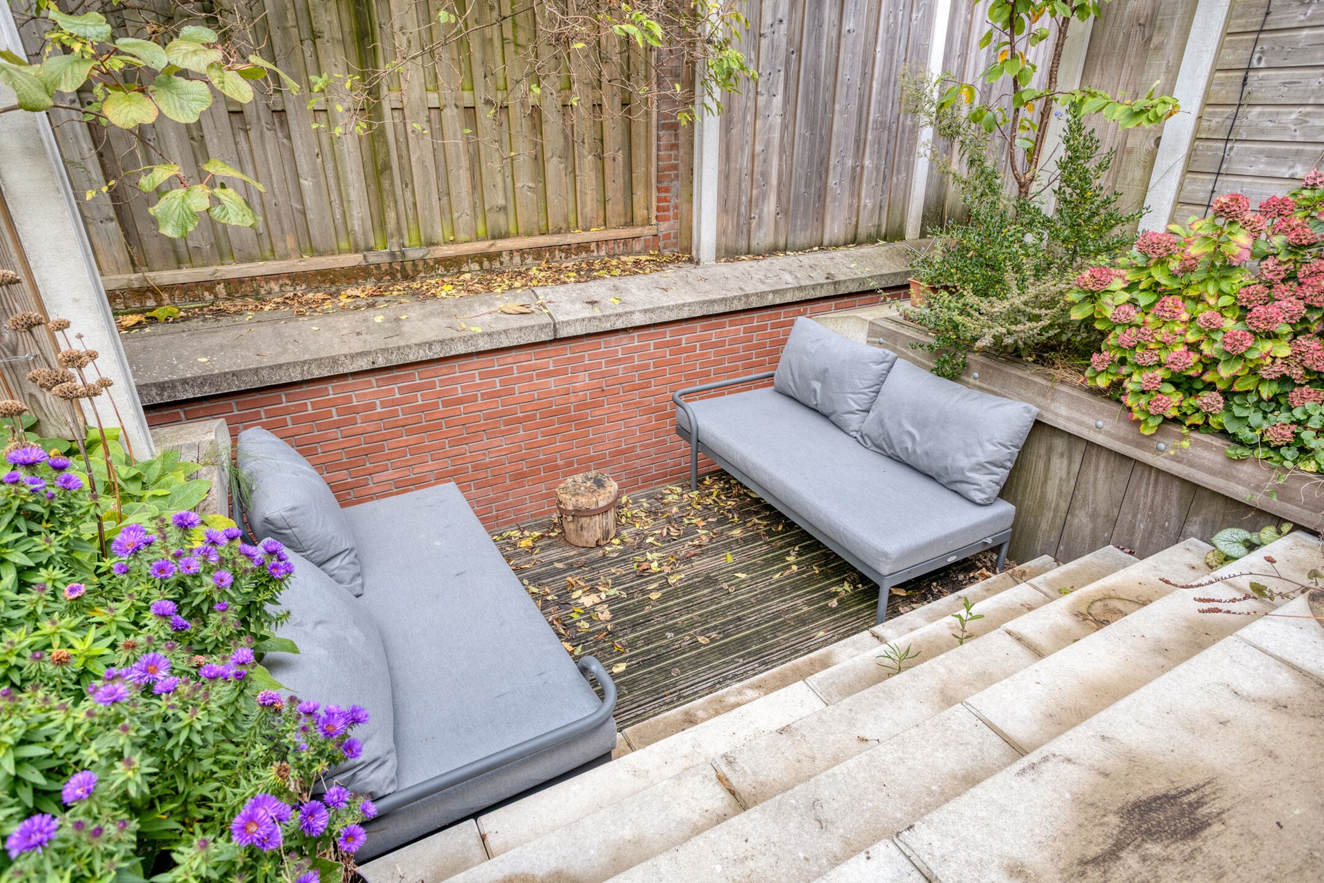 Een zonnige, vrije achtertuin met een uniek zonneterras direct aan de Drienerbeek